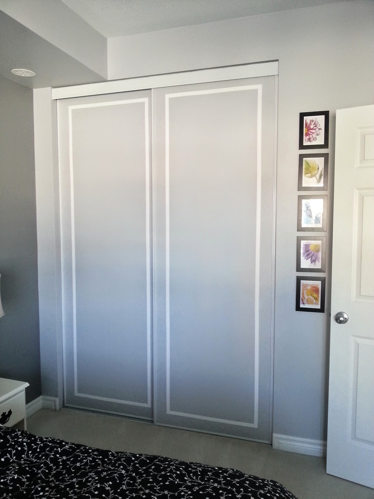 Here's a before of what the doors looked like. Plain, builder white. Don't mind the blue tape. The photo was from back when I did my pre-delivery inspection.
